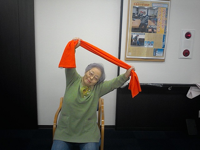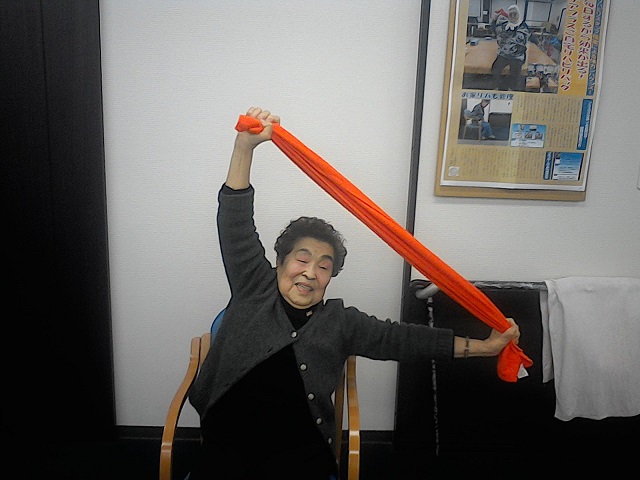体を横に倒す運動を継続することで肩周囲にあった違和感も少しずつ改善されたとの事でした。また、開始当初はタオルを体一周する運動は難しかったようですが、最近ではだんだんとできるようになったとのお声なども頂いております。