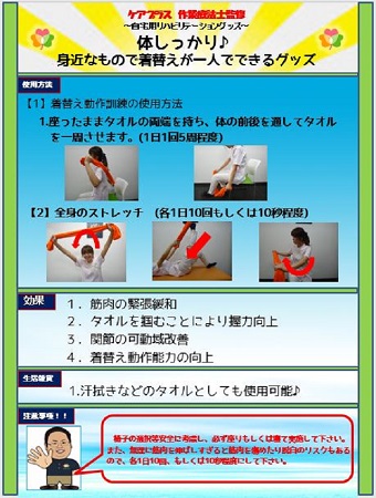 今回のブログでは、「体しっかり♪身近なもので着替えが一人でできるグッズ」を使って自宅リハビリを頑張られた2名の方々をご紹介致します。