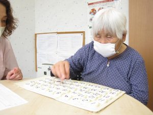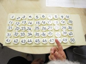 最後は数字盤です。30、50、100とその方のレベルに合わせて実施します。声に出しながら並べていきます。