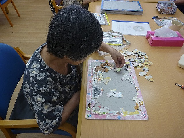 女性のご利用者様はと言いますと…手先の器用さを活かし創作活動に参加される方やパズルをして脳の活性化を目指す方もいます。