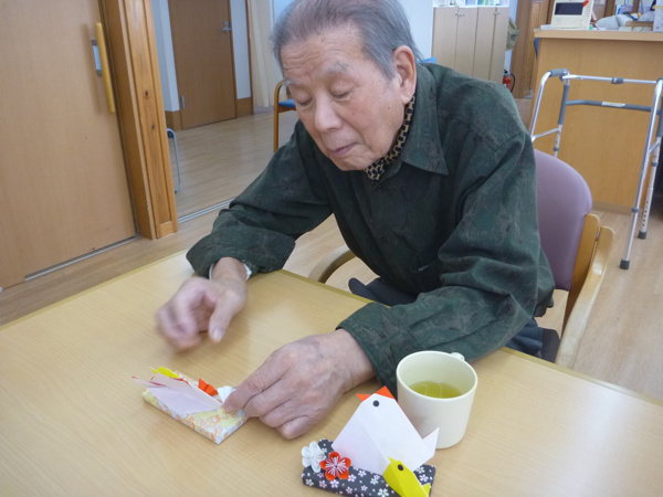 ということで今回は酉年にちなんで、ご利用者様と一緒に手作りの干支人形作りをしました。