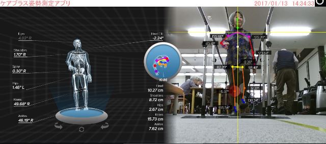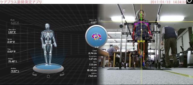 ケアプラスには姿勢測定装置があり、歩行状態の変化を目で確認することもできます。