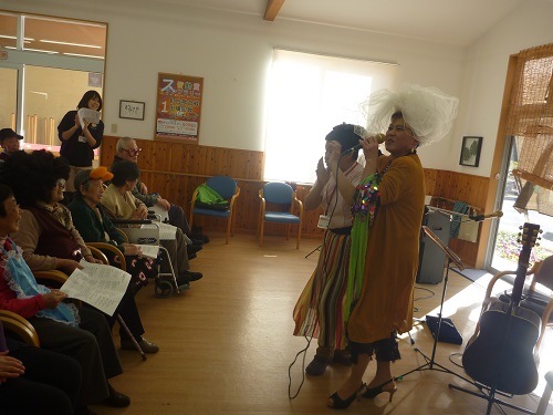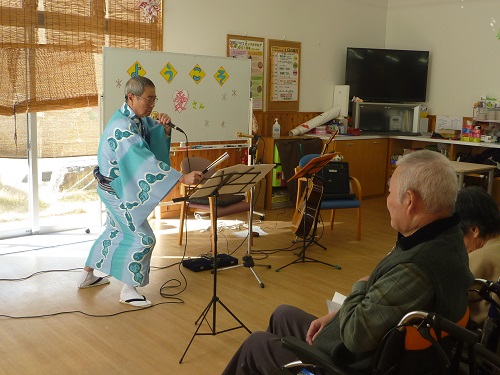 曲の間に楽しいトークショーが行われたり、ご利用者様も飛び入りで歌われるなど、会場は大盛り上がり!