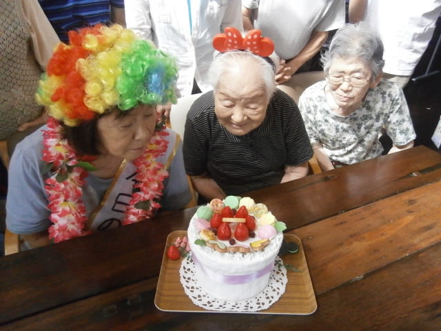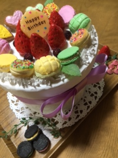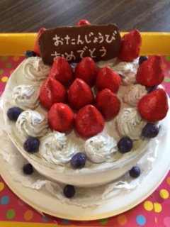 さて、今日はケアプラス垣生でご利用者様のお誕生会にお出ししているバースデーケーキの紹介をしたいと思います。こちらの写真は、2年前に作ったケーキです。