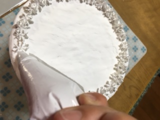 2:紙粘土に水と木工用ボンドを加えて揉み、柔らかくなったら絞り袋に入れ、ホイップクリームを作ります。