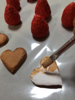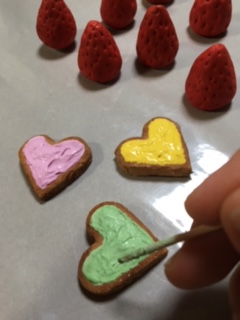 3:イチゴと型抜きしたクッキーに色を塗っていきます。