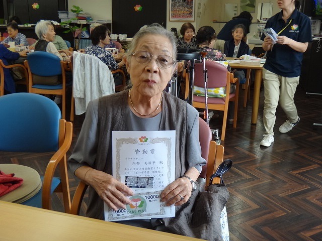 中には、過去3か月ともに皆勤賞で、今月も皆勤を目指してくださっている方もおり、ご友人やデイで親しくなられた方をお誘いしてご一緒に頑張ってくださっていただいております。
