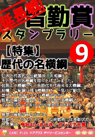 6月より実施してまいりましたスタンプラリーも最終戦!!今回は歴代の名横綱ということで、日々シートにシールが貼られていくたびにご利用者の方々も懐かしいお話をされております。