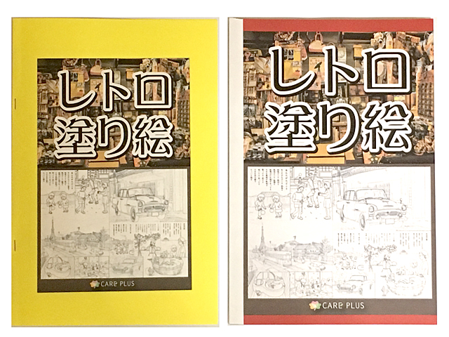 左が利用者様に作成をして頂く作品、右はお持ち帰り頂くお土産の塗り絵ノートです。