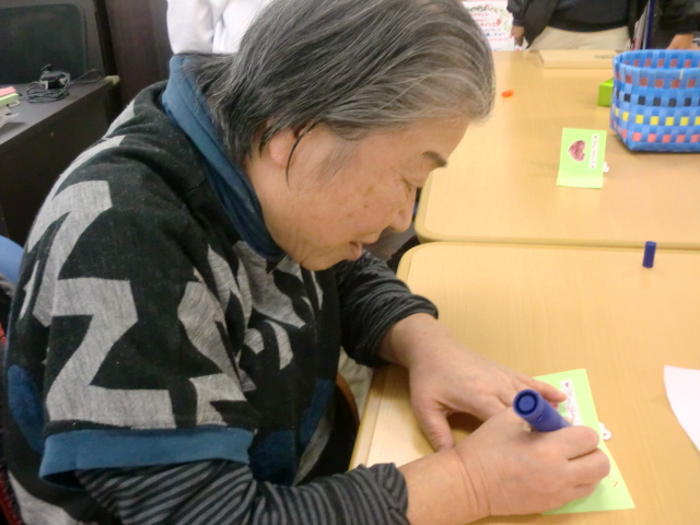 待っている間に大切な方へのメッセージカードの作成です。「大切な方はいますか?」とご質問させて頂いた際は、照れていらっしゃったのかお答え頂けなかったのですが、メッセージを書く時になると、「私は娘に贈ろう。」「私は家族全員に‼」と日頃の感謝の想いをメッセージカードに込められました。