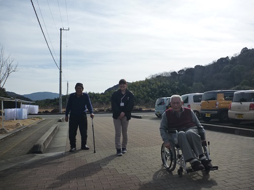 最近寒い日が続いていた為、なかなか外に出る事が出来ずにいましたが、今年に入って一番のお散歩日和という事で、沢山のご利用者様をケアプラス宇和島のお散歩コースへとお誘いいたしました。