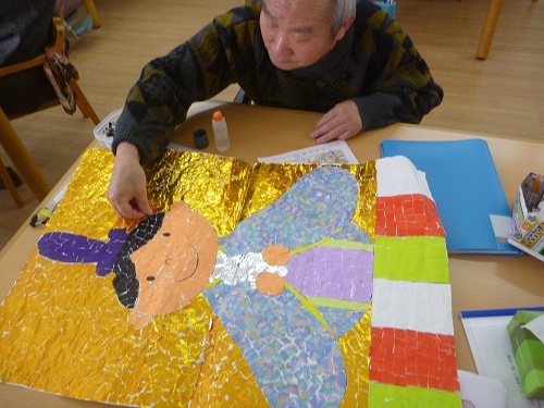今回も素敵なカレンダーが完成しました。ご利用者様からは「素敵なちぎり絵ができて良かったね」と大好評でした。さらに!金色のキラキラも眩しくて綺麗との声も!