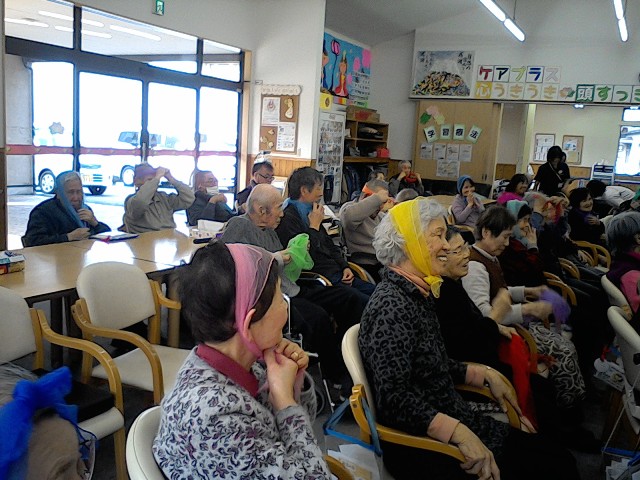 次に季節の歌で「朧月夜」を歌いました。春の食べられる草ということが話題に上りふきのとう、土筆、イタドリなどよく聞くラインナップとなりました。僕も小さいころ祖父と土筆やわらびを山に取りに行ったのを思い出しながら皆さんの話に耳を傾けていました。