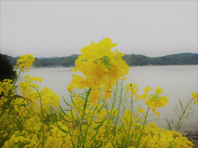 先日、利用者様をお迎えに吉田湾の海岸線沿いを走っていたら、海を眺めるかのように菜の花がいっぱい咲いていました。