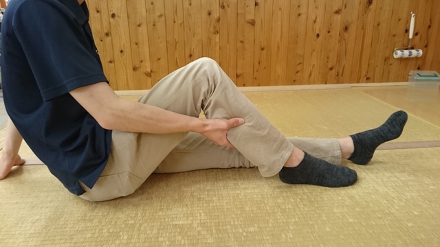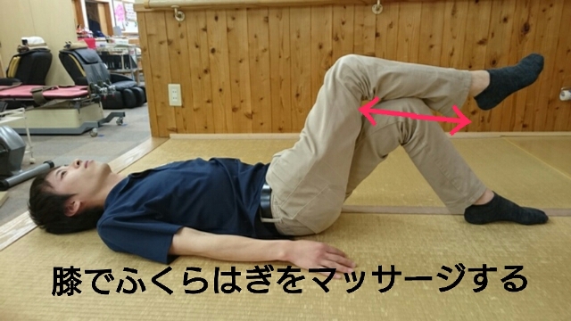掴みもみは手が届かないという人は寝た状態や座った状態で反対側の膝の関節を利用してふくらはぎをマッサージしてみましょう。