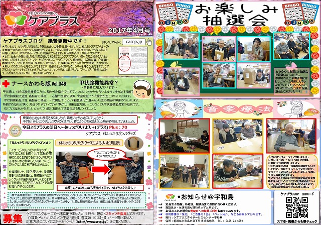 さて今回のブログは、ケアプラス宇和島新聞4月号を更新しました。