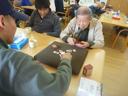 続いては将棋と花札をされている様子です。将棋も花札も真剣に勝負をされており、他の場との空気の違いを感じました!私も何度かご利用者様と対戦をさせて頂くのですが・・・一度も勝てません!!