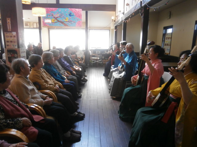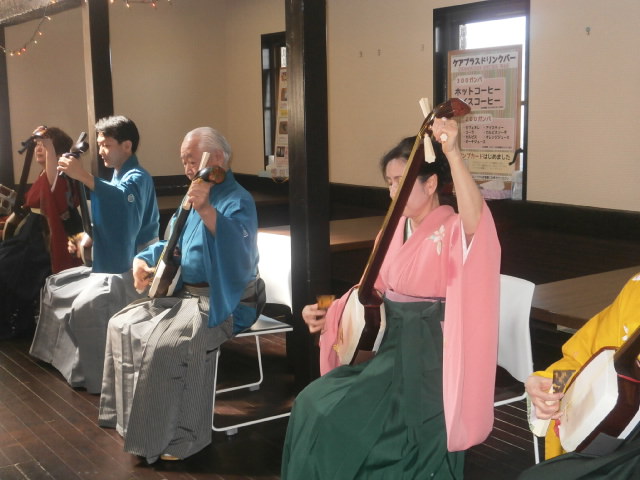 『十三の砂山』『願人節』と演奏が続き、ご利用者の皆様は圧倒的な三味線の音色に聴き惚れていました。