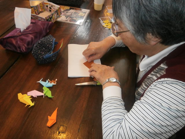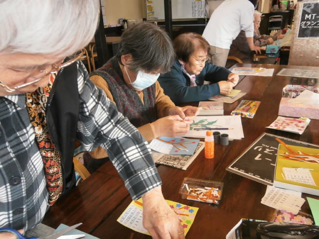 「折り紙は苦手やけど、貼り絵するんは好きよ。」と仰る方々は、貼り絵に夢中です。