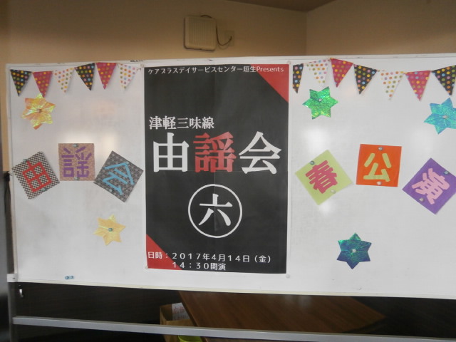 4月14日、ケアプラス垣生では6回目となる『由謡会』の皆様による津軽三味線演奏会が行われました。今回も堀尾由謡先生とご子息の泰磨先生、お弟子さんの三瀬さん、皆川さん、木下さんが来訪して下さいました。