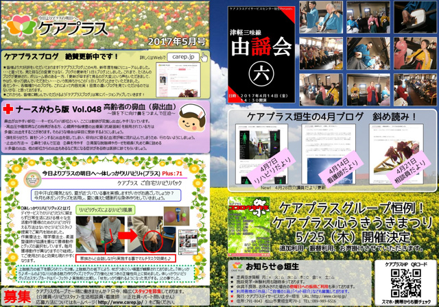 さて、今回はケアプラス垣生新聞5月号の紹介をします。