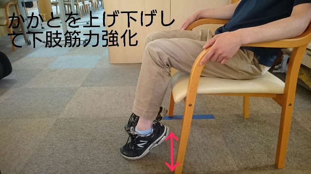 次に、椅子に座った状態でかかとの上げ下げを行いましょう。