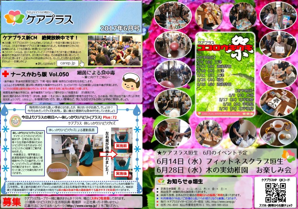 さて、今回はケアプラス垣生新聞6月号の紹介をします。