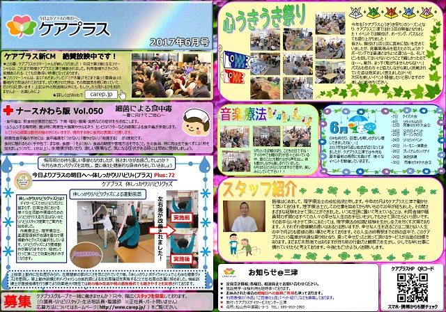今月も楽しみがたくさんありますよ!!ぜひケアプラス三津新聞ご一読ください。