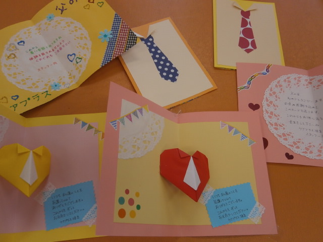 そして、6月と言えば、母の日に比べて、ちょっぴり影の薄い父の日もありました(笑)こちらも母の日同様、男性のご利用者様に日頃の感謝を込めてスタッフ手作りのメッセージカードを贈らせて頂きました。