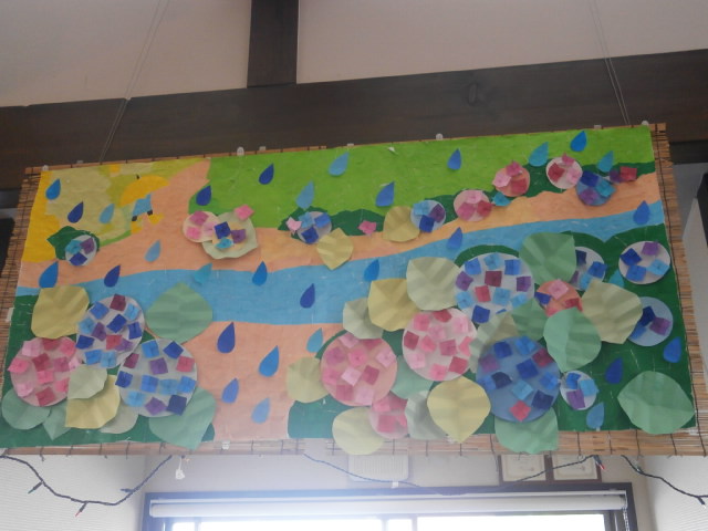 さて、6月のケアプラス垣生の貼り絵は‥やっぱり紫陽花ですね~。そして、カレンダーはアサガオ。 この時期らしく、どちらも素敵に仕上がっていますね(^。^)