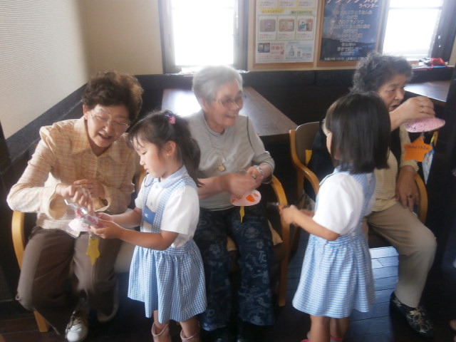 結果は仲良く引き分け!その後、プレゼントの交換をしました。このみっ子達からは素敵な風鈴のプレゼントを頂き、ご利用者の皆様は感無量のご様子でした。