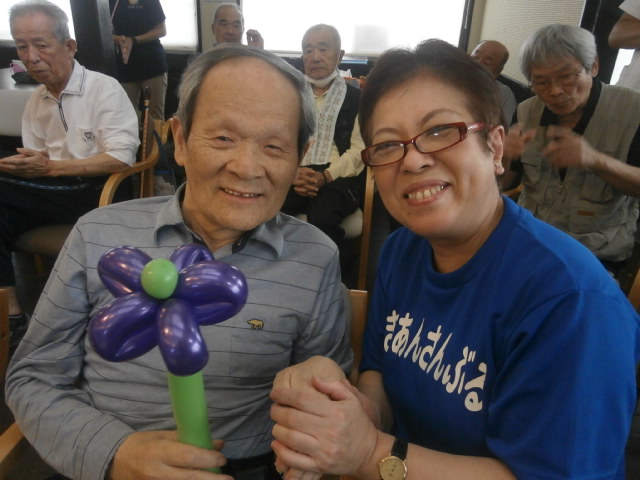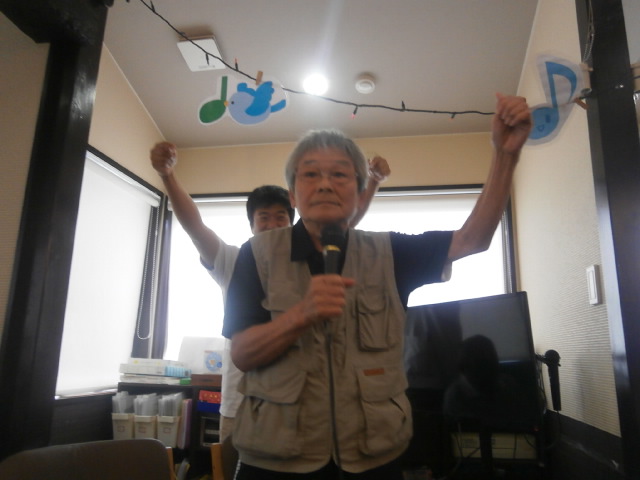 早速、鍵盤ハーモニカによる『ひょっこりひょうたん島』からスタートです。七夕特別と云う事でこの日にピッタリな『七夕様』『星のフラメンコ』『見上げてごらん夜の星を』と演奏が続き、ご利用者の皆様はそれぞれお好きな曲をマイクを手に歌われていました。オリジナル曲の『お天道様』は面白い歌で、ご利用者様方からは笑いがあふれていました。アンコール曲を含む全11曲が奏でられ、普段はカラオケには参加されないご利用者様も、マイクを手に歌われる姿が見られました!歌に合わせて踊り出すご利用者様もおり、楽しいひと時となりました。