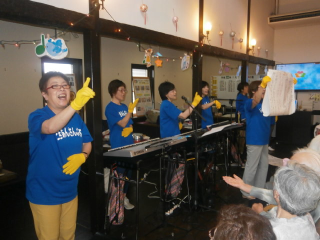 7月7日にはケアプラス垣生では4回目となる『トキアンサンブル』の皆様による『七夕特別公演』が行われました。トキアンサンブルさんは福祉施設や病院などを慰問され、オリジナル曲をはじめ様々な歌や演奏を披露されて交流を行っているグループです。