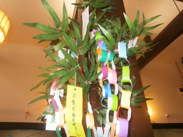 ご利用者の皆様に短冊に思い思いの願い事を書いて頂き、笹に飾りました!ご家族の健康を祈る方、体調の回復を祈る方、様々な願い事が書かれました。願い事がお星様に届きますように!