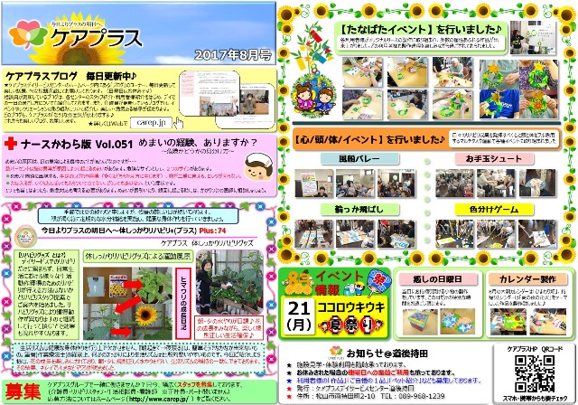 ケアプラス道後持田新聞 2017年8月号が更新されました!