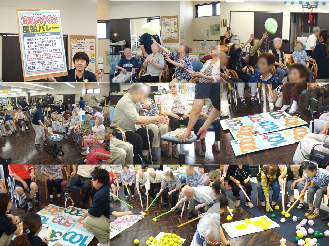 一番人気の風船バレーでは、どこに飛ぶか分からない状況の中を多くのご利用者の皆様が全身を大きく動かされながら風船を打ち返しておられました。各チームとも最も多くの歓声が上がった種目でした♪