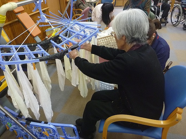 との声が女性のご利用者様から多くあり、少しでも役割を持って生き生きとした生活をして欲しいとの願いから、職員と一緒に取り組んで頂いております。