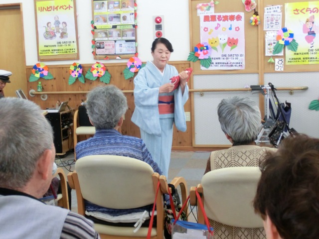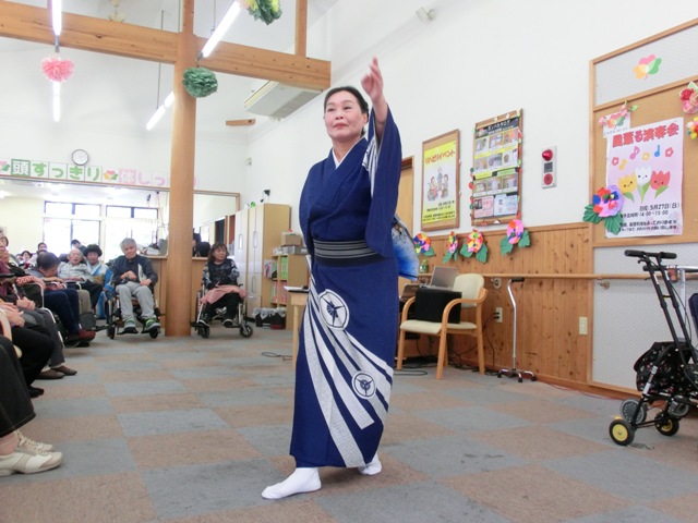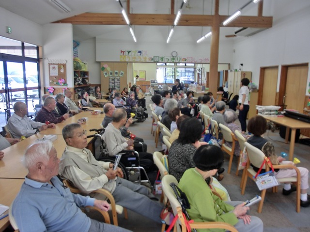 恒例行事になりました“さくらの会”の公演が開催されました!懐かしの歌謡曲にご利用者も知っている曲に合わせて歌ったり、リズムを取ったりして皆様とても楽しんでいただきました。来て下さるたびにパワーアップして提供して下さるので、次回の公演も楽しみです(^ ^)