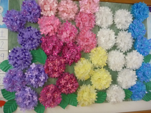 勿論、こちらケアプラス宇和島でも手作りのあじさいがあり、本物に負けないくらいに綺麗に咲いております!