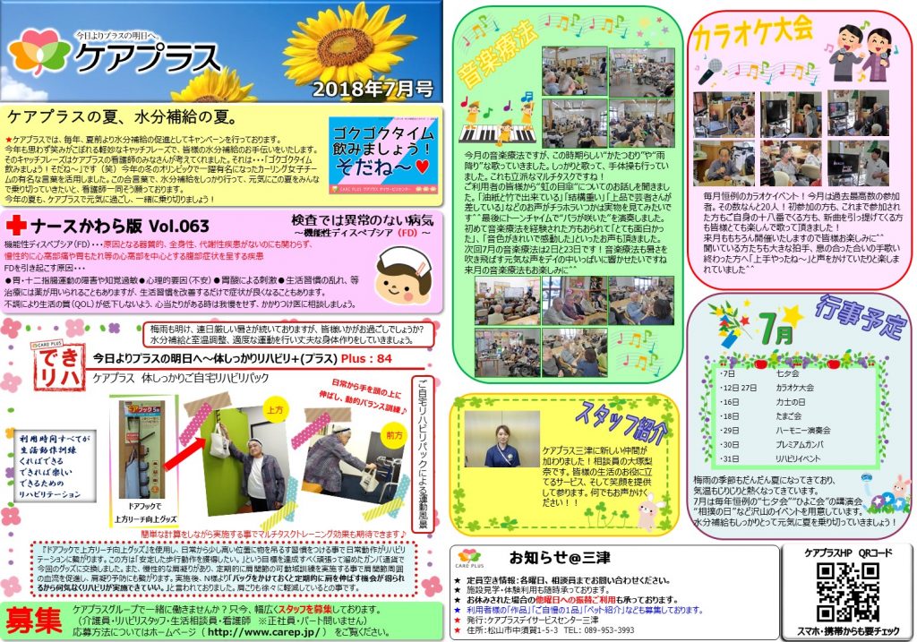 ケアプラス三津新聞7月号が更新されました。