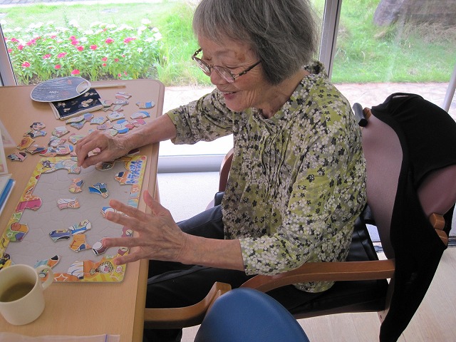 そして手先のリハビリも兼ねて、合間に机上でのパズルも意欲的に行われ