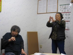 ケアプラスではカラオケを設備しており、カラオケ好きのご利用者様の方々がご利用されています。好きな歌手の歌や十八番の歌を歌われ、さらには!!曲に合わせて踊ったりしながら皆様とても楽しまれ、その場はまるでのど自慢コンサートのような楽しい雰囲気に包まれています。