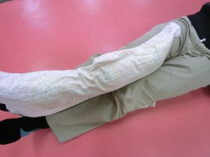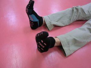 まず、人間の筋肉はその総量の70%近くが下肢にあると言われています。その為、今回はその下肢のリハビリについて紹介していきます。初めに行って頂きたいのは足のグーパーです。これを行うことで足先の血流が促進され、身体の固さが解れてきます。
