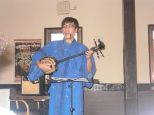 沖縄民謡の『安里屋ユンタ』から始まり、アンコールを含めて全17曲!『島唄』『涙そうそう』『花』『アリラン』『浜千鳥』『お富さん』などなど韓国民謡、唱歌、演歌と様々なジャンルの曲を三線で演奏しながら歌って下さいました。