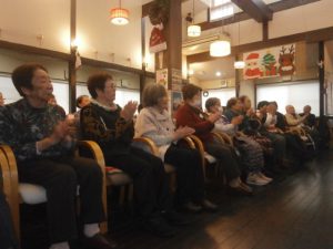 12月18日には『嶋本 慶 三線年忘れコンサート』が行われました。嶋本さんは松山在住の三線奏者で、様々な所で三線教室を開いておられます。夏以来の来訪に、ご利用者の皆様も職員もワクワクドキドキでした!(^^)!