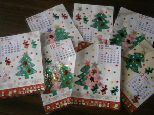 個人制作のミニカレンダー、12月用はやっぱりクリスマスツリーの絵柄です。
