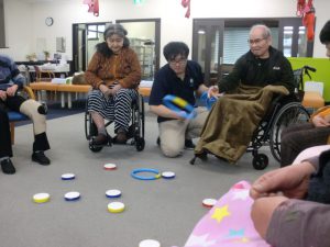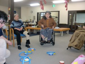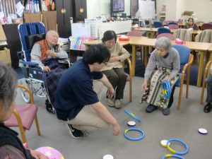 皆様の様子は的を小さくしたことでどのくらいの距離が必要かを目でしっかりと確認して行う方が多く見られておりました。ただ、輪を投げる際の力のコントロールについては難しい様子でした。