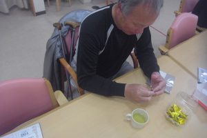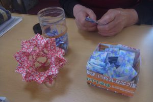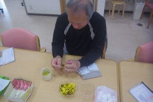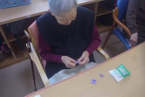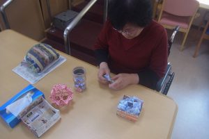 最初に見た時は何を作っているのかな?と不思議に思っていましたが、どの方もデイサービスではパーツを作成し、ご自宅で完成させているとの事でした。皆さん本当に器用に作られていますよね!