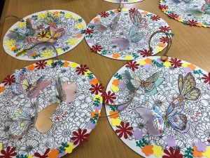 先日、日曜日に作っていただいた作品で塗り絵から始まる作品作りを行いました。