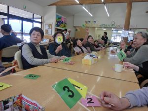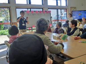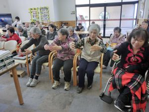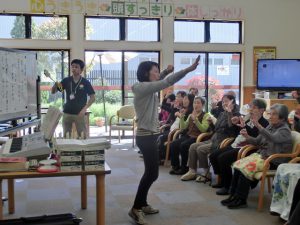 まず尾崎先生による音楽療法ですが、今回は「春」にまつわる曲ということで「さくら」「春が来た」などの曲を歌いながらタケノコの美味しい食べ方や桜の穴場などに話をはずませていました(^^♪